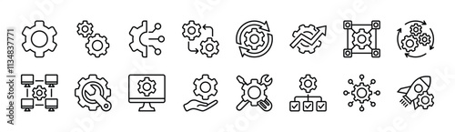 Branding collections editable stroke outline web icons set. Branding, product, marketing, advertising, company, strategy, social media, identity, and more... Vector illustration