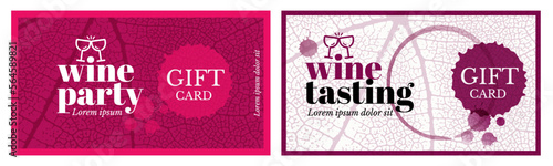Collection of templates with wine designs. Brochures, posters, invitation cards, promotion banners, menus. Wine stains, drops. illustrations of wine glasses.