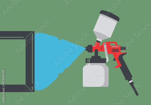 Automobile paint spray gun repair automotive refinishing customization car body shop flat design vector illustration isolated on transparent background