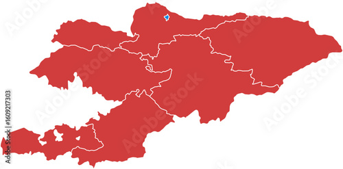 Kyrgyzstan kyrgyzstan. Kyrgyzstan map with regions highlighted isolated on white background.