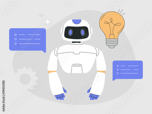 AI Robot Assistant robot with Chatbot and Icons including medical, science, brain, automation system for Artificial Intelligence and Agentic Ai Concepts. Generate Prompt Text Vector Illustration.