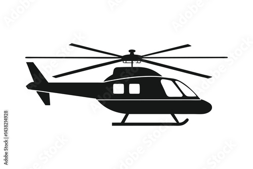 Vector graphic of black helicopter silhouette aviation transport flying machine aircraft rotorcraft chopper design