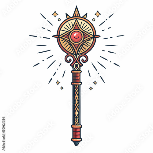 Detailed illustration of a sword surrounded by runic symbols in a circular magical pattern design