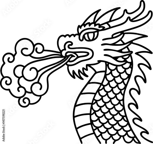 Stunning dragon heads in black and white with sharp horns and fierce expressions