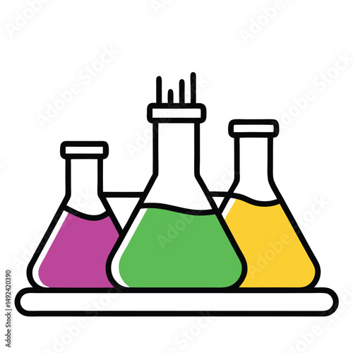 Illustration of laboratory equipment with colorful liquids for scientific experiments