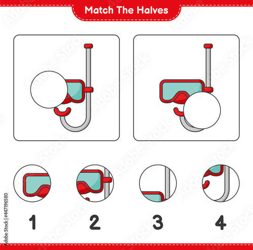 Cut and glue, cut parts of Scuba Diving Mask and glue them. Educational children game, printable worksheet, vector illustration