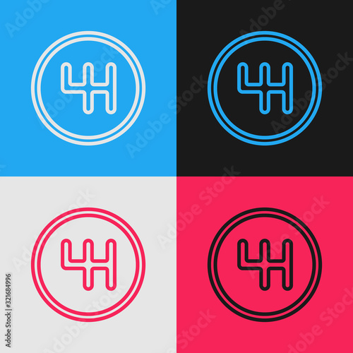 Set line Gear shifter icon isolated on yellow and blue background. Manual transmission icon. Vector