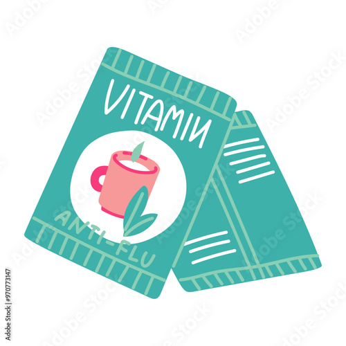 Girl suffering from sore throat at home on sick leave drinking hot tea and medicine