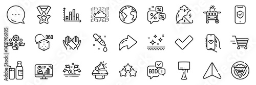 Cloud system, Smartphone holding and Diagram graph line icons pack. Share, Message, Paper plane icons. Stress protection, World planet, Milk web icon. Vector