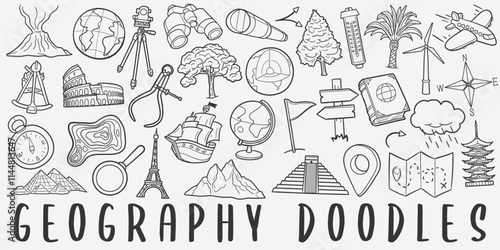 A collection of educational icons showcases learning symbols such as books, apples, and globes with black detail