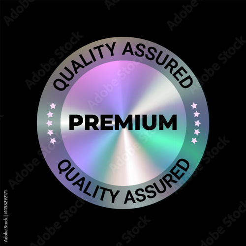 Set of holographic stickers for original products. Product quality guarantee hologram diferent shape sticker. Certified product iridescent tag, authenticity guarantee shiny vector seal
