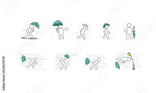 Minimalist line art set of wind and leaf icons, representing natural elements and seasonal changes