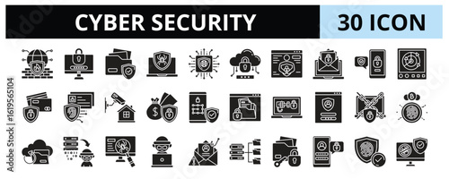 A Collection of Security Icons in Teal Representing Various Aspects of Cybersecurity and Data Protection Including Encryption Firewalls Privacy and Threat Detection Against a White