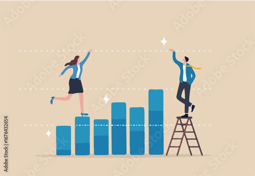 Raise the bar increase standard or benchmark for business improvement, growth or growing process, increase expectation, profit or assessment concept, business people raise the bar on graph diagram.