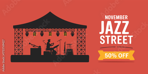 Jazz Street promotion with a musician performing on stage discount offer displayed November event