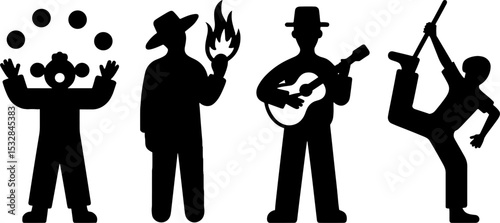 Street Performer Silhouettes Juggler Fire Guitarist Drummer