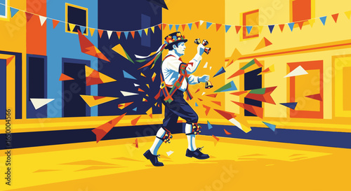 Vibrant illustration of a traditional folk dancer performing at a colorful street festival.