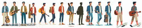 Street Musician Male Vector Characters with Guitar