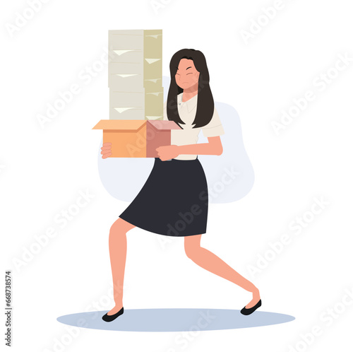 Business woman managing stress. Corporate Finance Cartoon Minimal Clipart Line Art Vector Illustration. Female leader tackles workplace pressure boosts well-being and achieves calm.