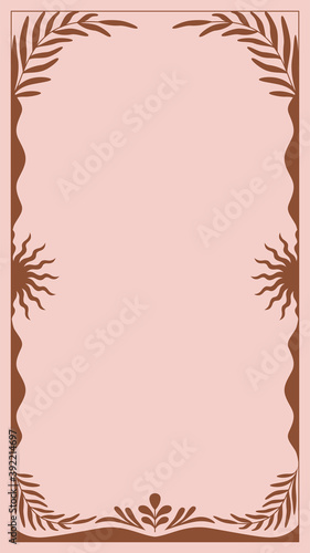 Mystical tarot card, witch holding sun engraved on beige boho background. Background for stories, magical celestial astrology card, zodiac. Hand drawn vector illustration.