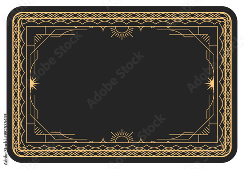 Tarot card frames, fantasy magic border, hand drawn esoteric decor shape, horoscope spiritual print. Ornamental vintage medieval design, star, moon, sun mystic divination symbol. Ornate tarot card
