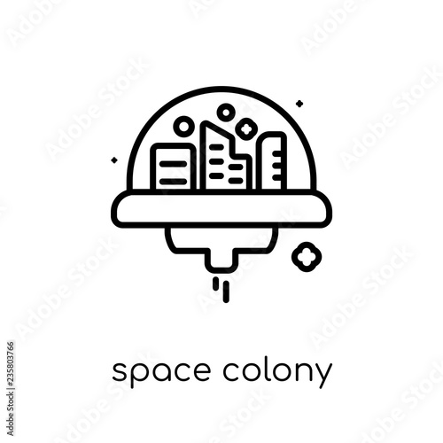 Space colonization black flat icon.