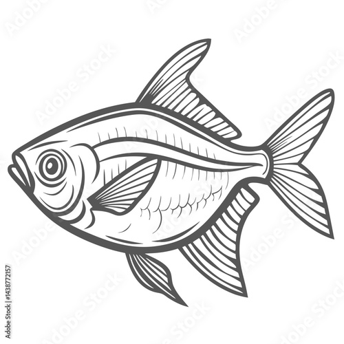 Simple Line Art Tetra Fish Swimming Under Water Illustration Graphic