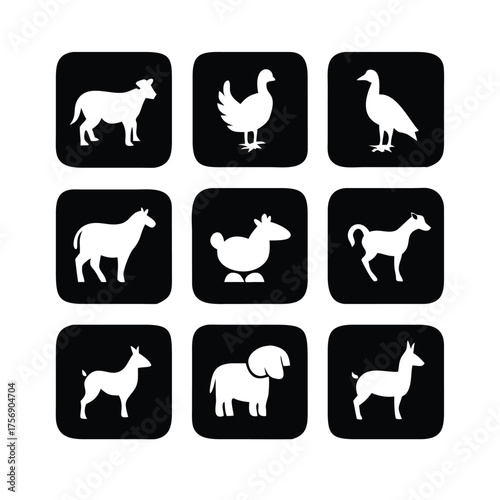 Silhouettes of wild cattle and buffalo, including gaur and bison, in various poses