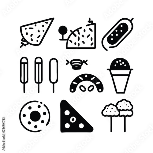 Breakfast Food Icon Vector Set Bacon, Pretzel, and Coffee Graphics Collection.