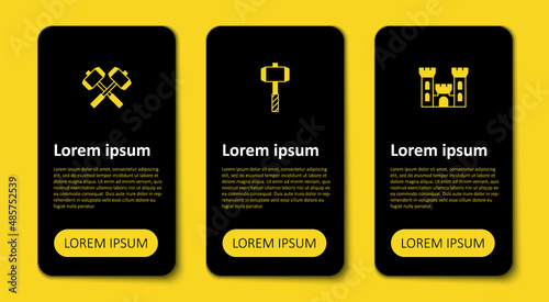 Set Crossed medieval axes, Military reward medal and Battle hammer icon. Vector.