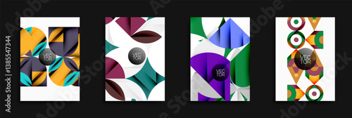 The formation of bodies of revolution. Set of volumetric geometrical colored shapes of rotation
