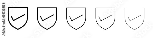 Security Shield Icons with Check Marks, Black and White Illustration, Protected Data