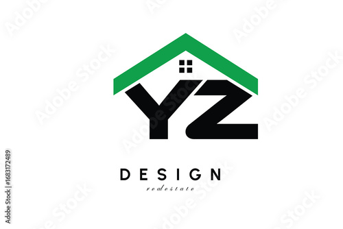 YZ Letter Logo – Green Roof House Monogram for Real Estate & Home Branding