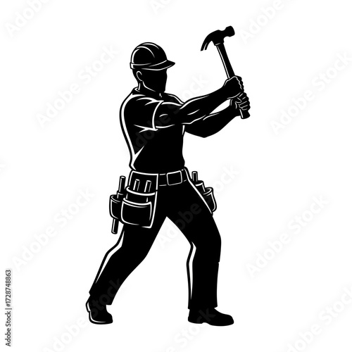 Dynamic Male Carpenter Captured Mid Strike Swinging His Trusty Hammer (1)