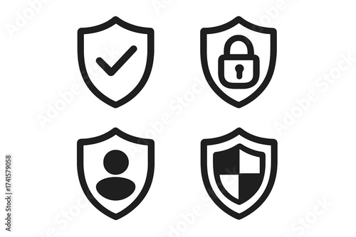 Security Shield Icon Set with Protection, Privacy, User Profile, Lock and Verification Symbols. Vector Illustration. Transparent Background. Protection and Safety Concept, Digital Security Design
