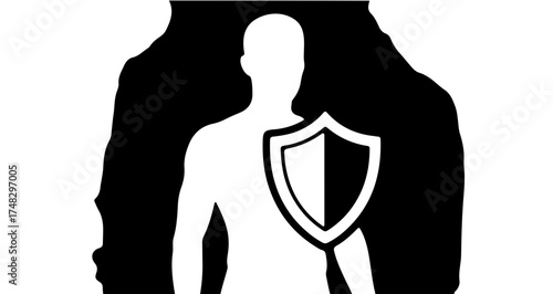 Empowerment symbol with human silhouette and shield, offering protection, security, and strength for health, insurance and wellness concepts