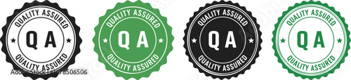 Quality Assured Badges in Black and Green | QA Stamps for Product Certification and Guarantee