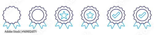 Award badge ribbon icon set with star and check mark, outline style for achievement and certification