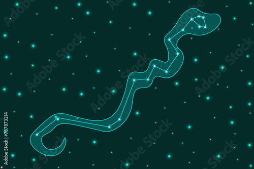 A large horizontal banner with the Constellation Serpent. Snake in the starry sky. Symbol 2025 Chinese New Year. Astronomical poster. Vector illustration. EPS 10 Editable stroke.