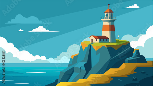 Majestic lighthouse on rocky cliff amidst crashing waves