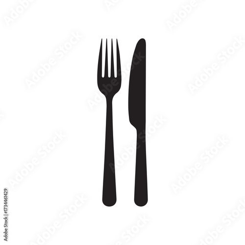 Fork and butter knife eating utensils in crossed position flat vector icon for apps and websites