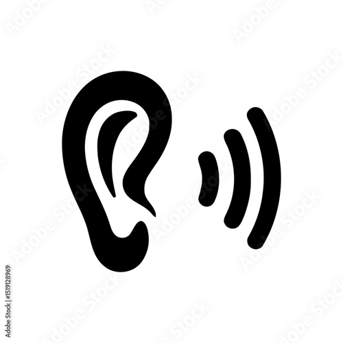 Sound waves and ear. Hearing protection, voice and speech recognition. Hearing accessibility. Pixel perfect, vector icon.