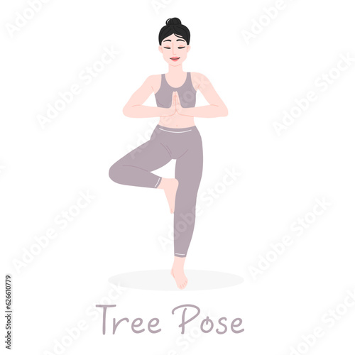 Tree Pose Vrikshasana Yoga Asana in Balance Position Illustration