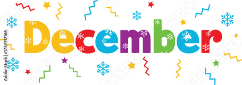 “Hello December” symbolizing winter season, holidays, and new beginnings. Vector illustration, isolated on a transparent background