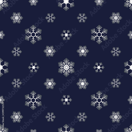 Vector illustration. Christmas and New Year seamless pattern. Snowflakes and flakes, falling snow. Scandinavian ornament. Abstract wallpaper. Snow pattern for advertising and typographic products.
