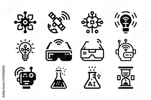 A set of black and white vector photography icons; a versatile collection of digital camera logo designs for creative branding and professional visuals.