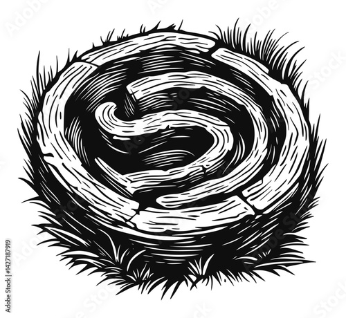 Vintage woodcut texture illustration featuring abstract lines and patterns