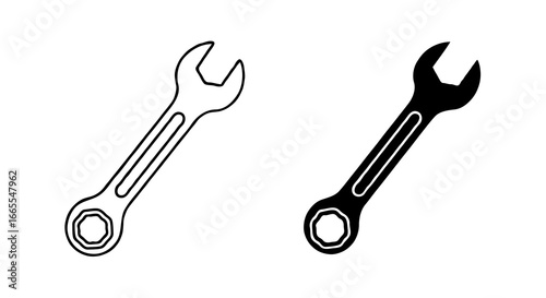 Modern illustration of a combination wrench featuring both open and ring ends, represented by a wrench or spanner icon
