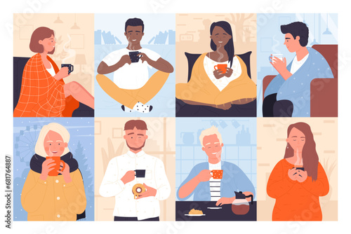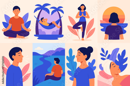 10-шаговая процедура ухода за волосами, плоская векторная иллюстрация. Мытье волос шампунем, вытирание, расчесывание щеткой, нанесение термозащиты, сыворотки для придания блеска и сушка феном.