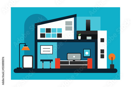 векторная печать 3d-модели дома. Современная инженерия, прототипирование, создание объектов и инновационная концепция технологии создания строительных проектов